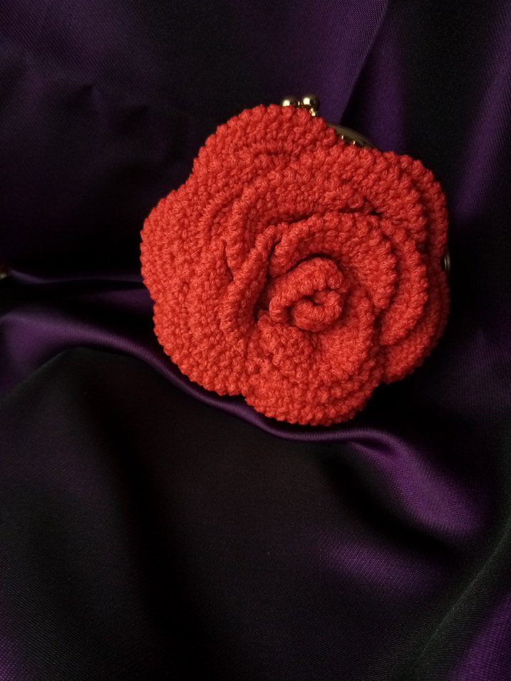 Kırmızı renkli, işlemeli detaylara sahip örgü gül cüzdan,Madeni para cüzdanı