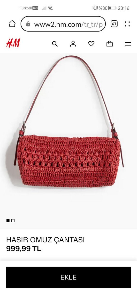 Kırmızı örgü dokulu, işleme desenli hasır omuz çantasıdır. Bohem tarzıyla günlük kullanıma uygundur.