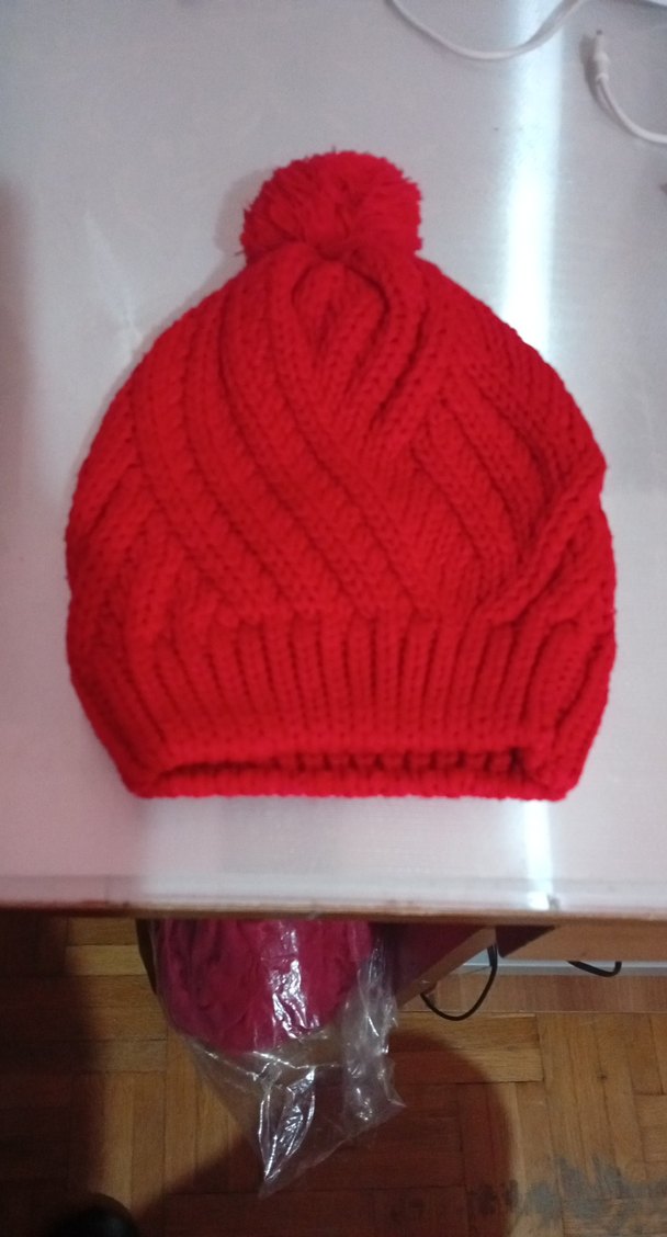 Kırmızı örgü kadın bere, üstünde ponpon detaylı ve sıcak tutan tasarıma sahiptir. Canlı rengi, temel kış kıyafetlerine renk katar.
