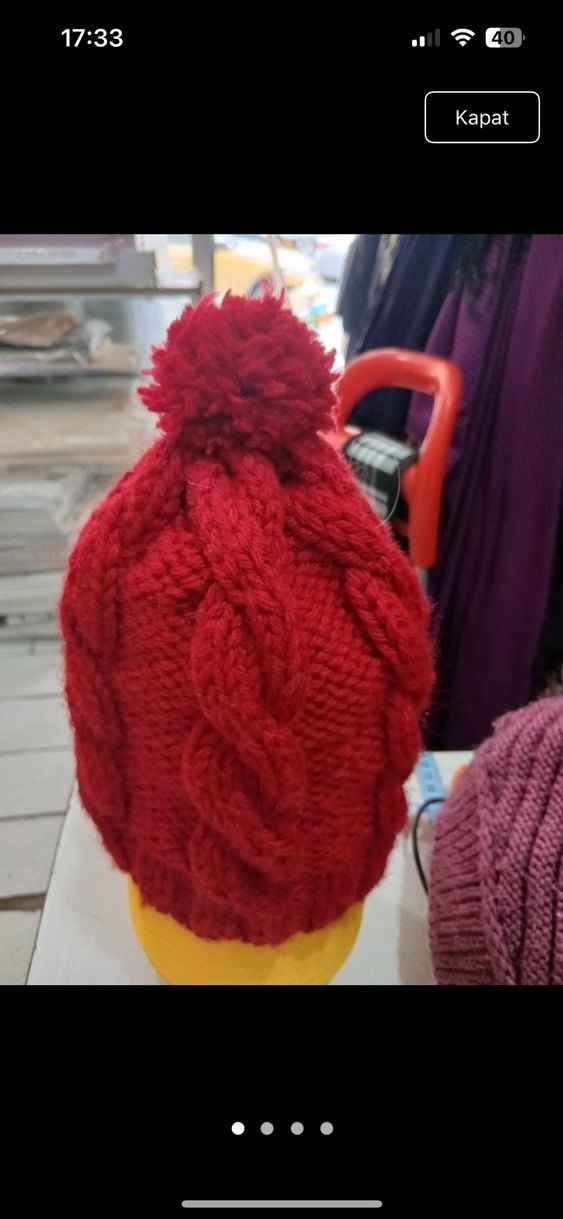 Kırmızı Örgü Kadın Bere