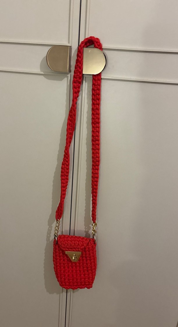 Kırmızı örgü kadın çanta, uzun askılı ve desen içermeyen minimalist tasarıma sahiptir, günlük sokak stiline uygundur.