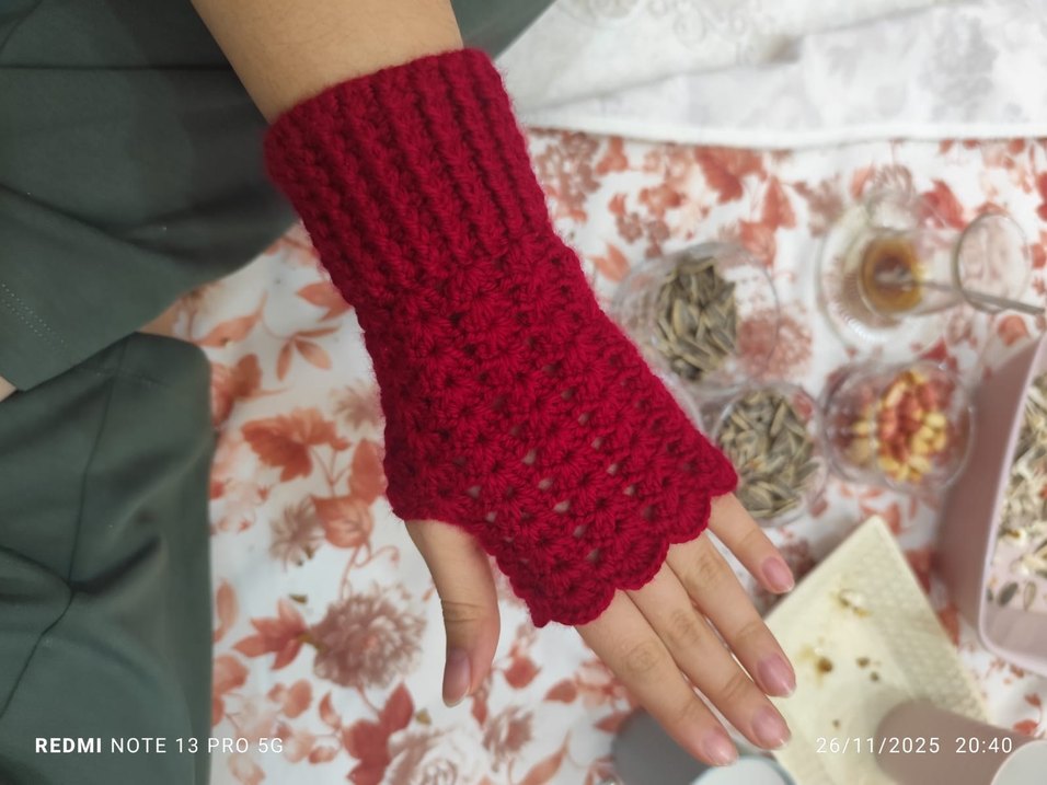 Kırmızı Örgü Kadın Eldiveni
