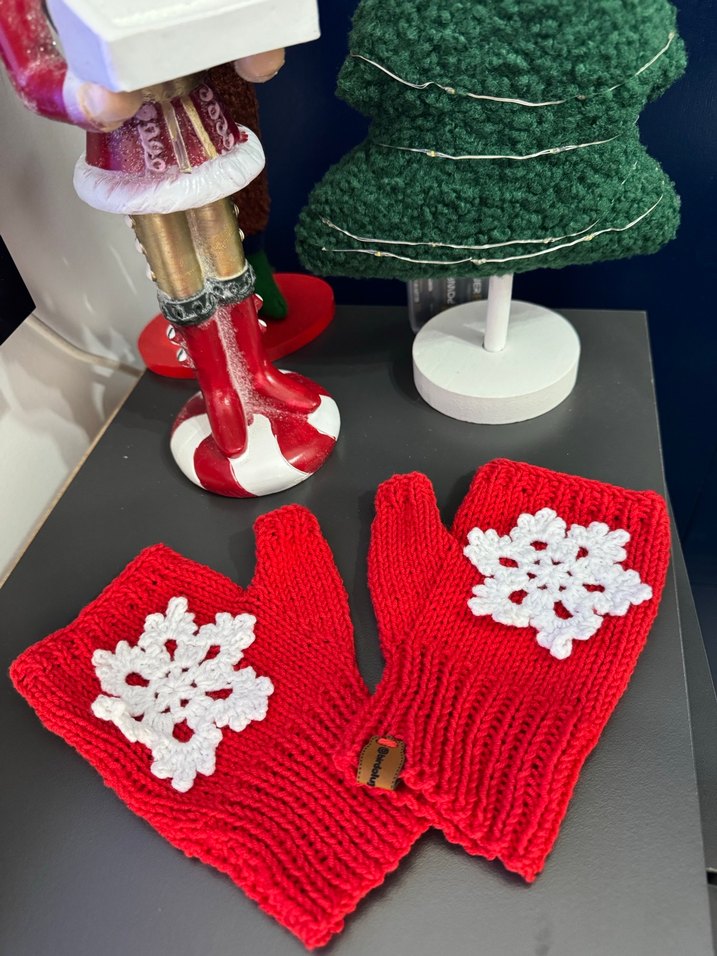 Kırmızı örgü kadın eldivenleri, beyaz kar tanesi detayıyla rahat ve bohem tarzda tasarlanmıştır. ❄️ Standart bedendir Tüylenme yapmaz 30 derece soğuk makine yıkamasına uygundur