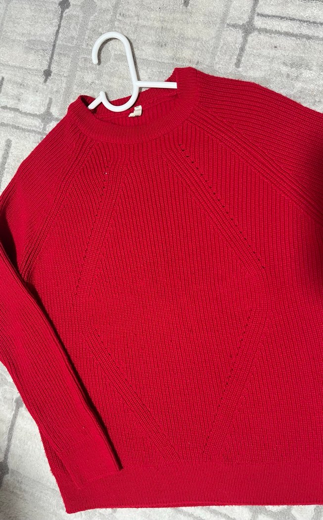 Kırmızı renkli, yuvarlak yakalı ve uzun kollu örgü kadın kazak, rahat kesimiyle günlük kullanıma uygundur. Canlı ve sıcak bir görünüm sunar.