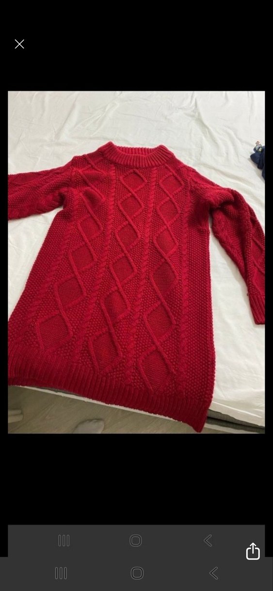 Bu kırmızı örgü kadın kazağı, uzun kollu ve bisiklet yaka olup, vücuda oturan kesime sahiptir. Rahat örgü kumaşı ve normal midi boyuyla günlük sokak stiline uygundur. Dokulu deseniyle canlı bir görünüm sunar.
