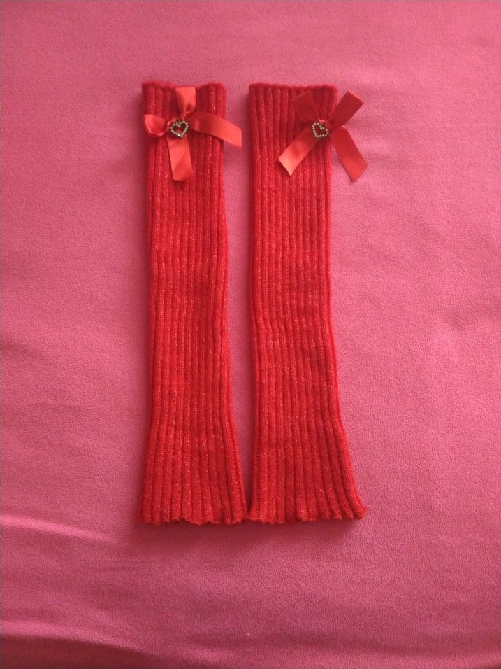 Kırmızı örgü kadın tozluk, rahat bohem tarzda fiyonk ve kalp süslemeleriyle renkli bir görünüm sunar. ufak kusurları mevcuttur