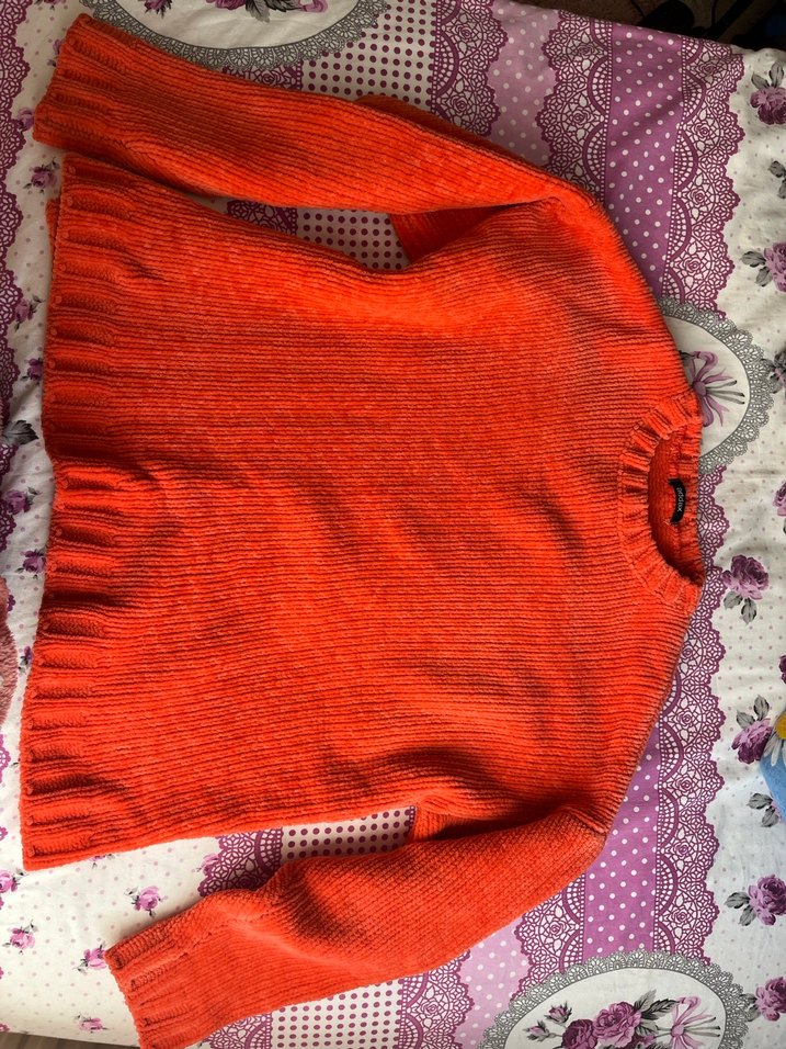 Kırmızı örgü triko, yuvarlak yaka, uzun kollu ve bol kesimdir. Normal midi uzunluğunda, desen içermeyen rahat bir sokak stili kazaktır.