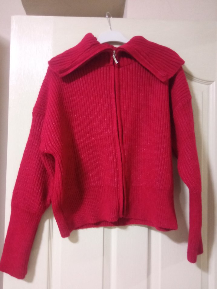 Kırmızı Örgü Kadın Triko Sweatshirt