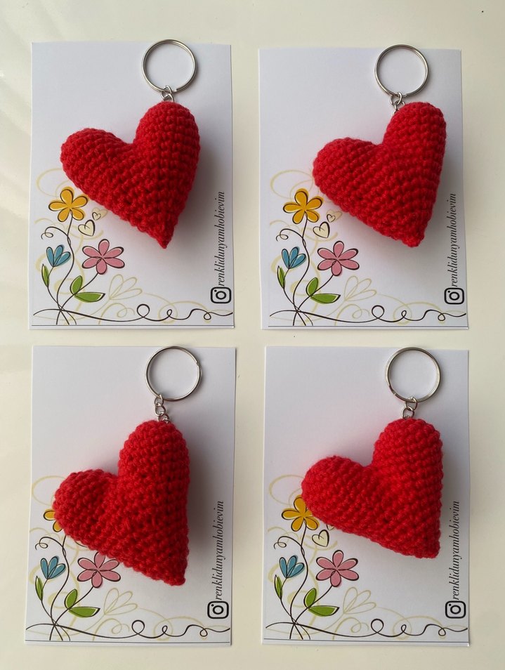 Kırmızı Örgü Kalp Anahtarlık