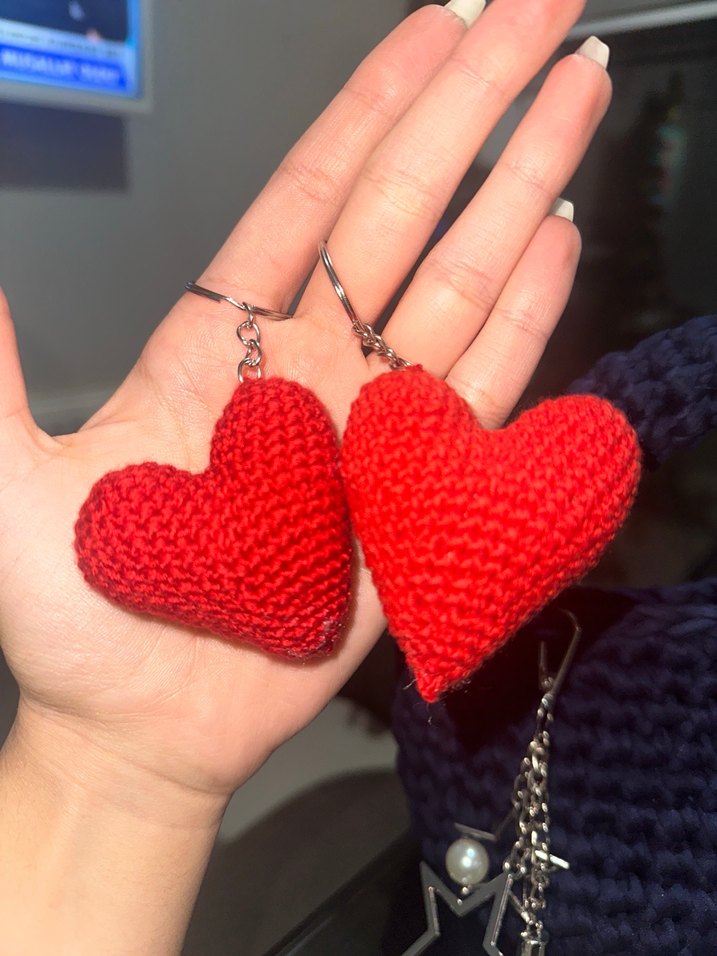 Kırmızı örgü kalp şeklinde anahtarlıklar, rahat ve renkli bohem tarzıyla. Sade ve basic tasarım, günlük kullanım için uygun. ❤️