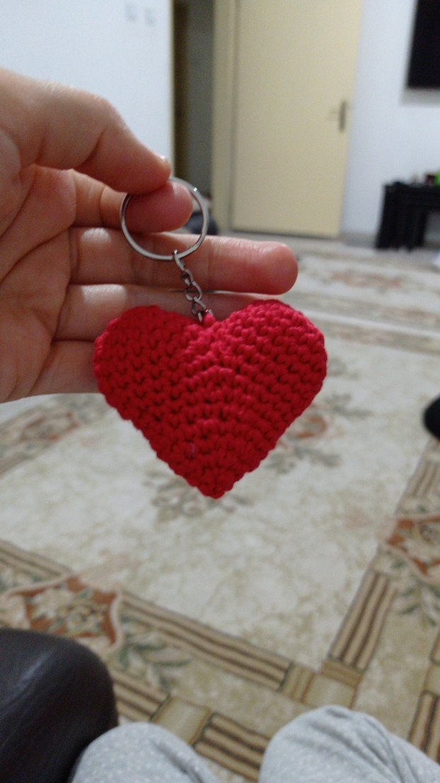 Kırmızı Örgü Kalp Anahtarlık