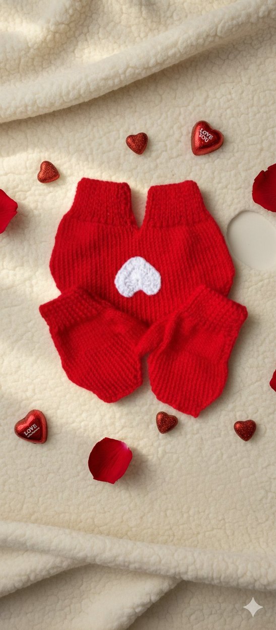 Kırmızı Örgü Kalpli Sevgili Eldiveni- Aşk Eldiveni