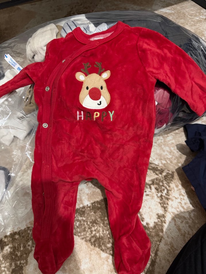 Kırmızı Örgü Nakışlı Bebek Tulumu