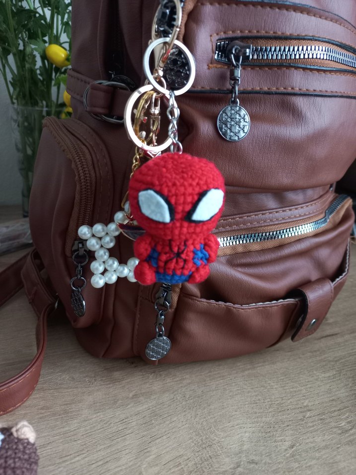Kırmızı Örgü Örümcek Adam Anahtarlık