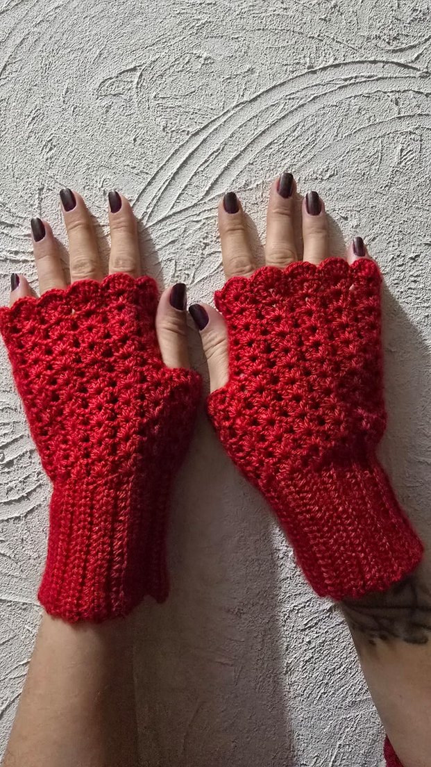 Kırmızı örgü parmaksız kadın eldiveni, rahat dokulu desene sahip. Bohem ve retro tarzlara uygun, renkli ve gotik esintili bir model. istediğiniz modelde eldiven, şapka vs. yapılır.