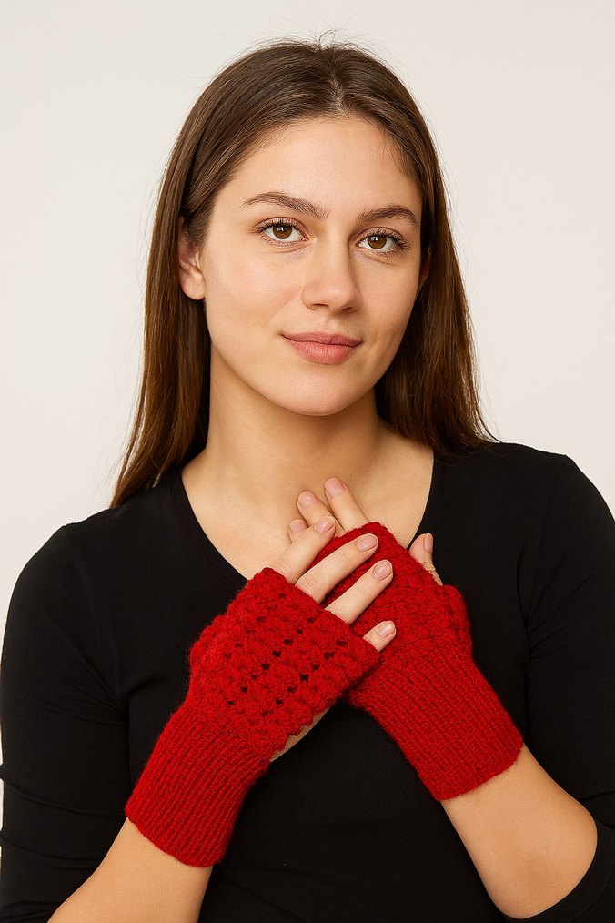 Kırmızı Örgü Parmaksız Kadın Eldiveni