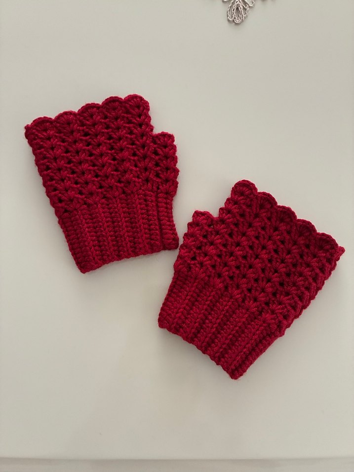 Kırmızı renkli, örgü parmaksız kadın eldivenleri, rahat ve bohem tarzda. Canlı renkleriyle nostaljik bir görünüm sunar.