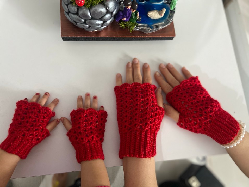 Kırmızı Örgü Parmaksız Kadın Eldiveni