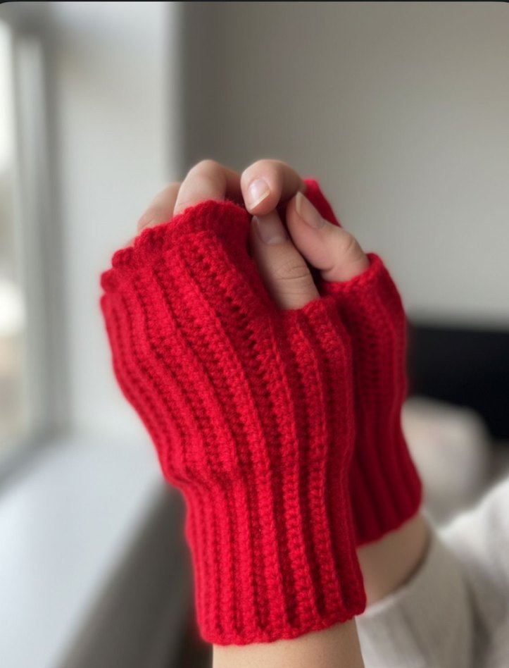 Kırmızı Örgü Parmaksız Kadın Eldiveni