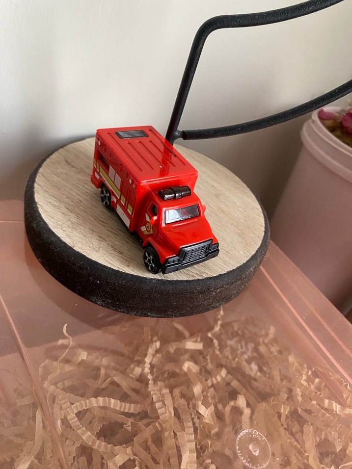 Detaylı özelliklere sahip renkli kırmızı oyuncak itfaiye aracı, oyun için uygundur.