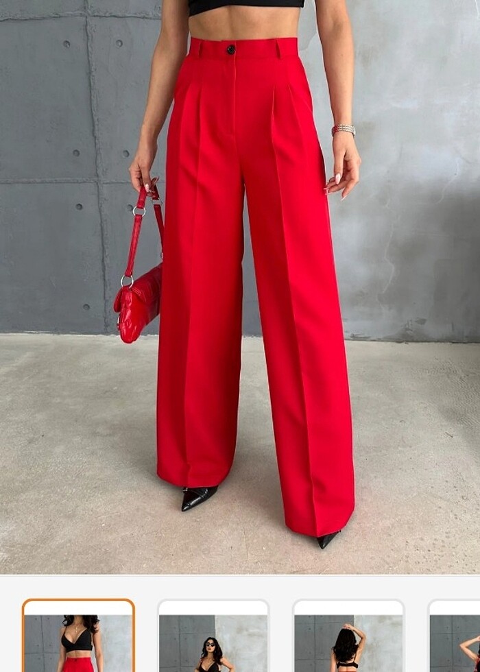 Kırmızı palazzo kumaş pantolon