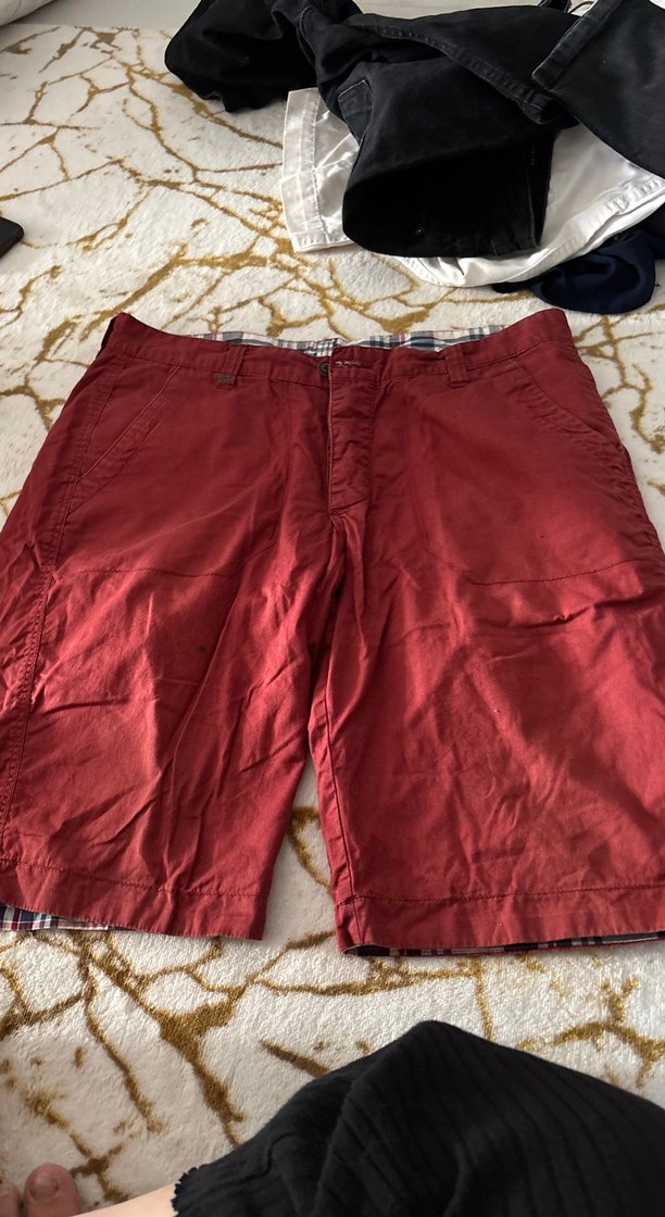 Parlak kırmızı renkte, pamuklu, bol kesim ve kemerli midi uzunluğunda şort. Günlük kullanıma uygun, rahat ve şık bir sokak stili ürünü.