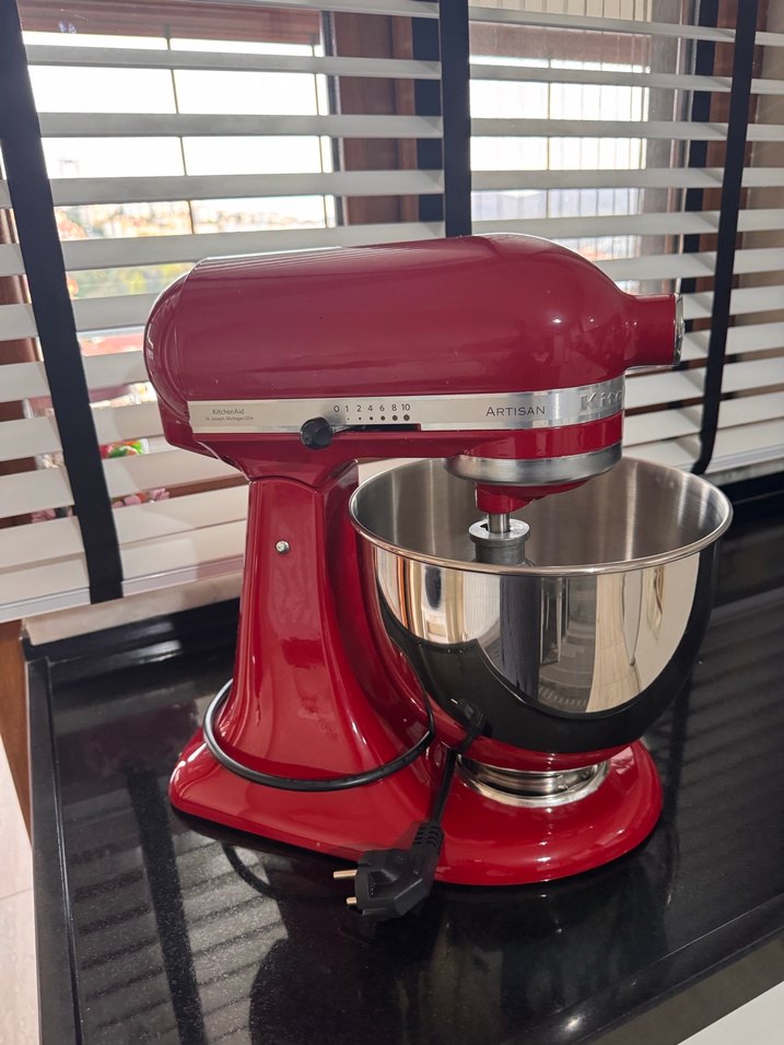 Parlak kırmızı renkli Artisan mutfak mikseri, paslanmaz çelik kase ve çoklu hız ayarları ile çeşitli karıştırma işlemleri için uygundur. Almanyadan bu mayıs ayında alınmıstır prizi türkiye uyumlu