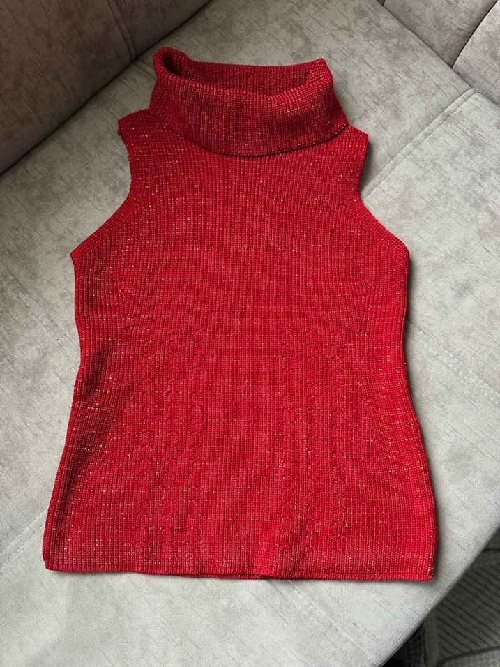 Kırmızı Parlak Balıkçı Yaka Kolsuz Triko