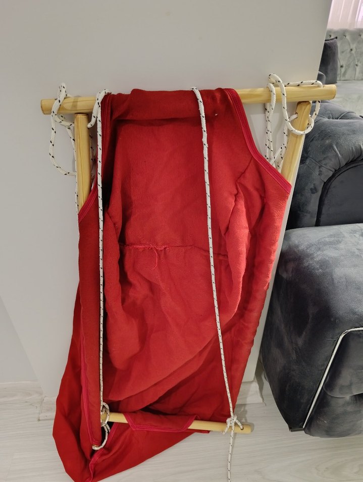 Kırmızı parlak bebek beşiği, yumuşak kumaş ve sağlam ahşap iskelet ile güvenli ip bağlama detaylarına sahiptir. ️ ürün dikişli yerinden az bişey açıldı ama sağlam dikildi hiç bir sıkıntı yok başka yerinde