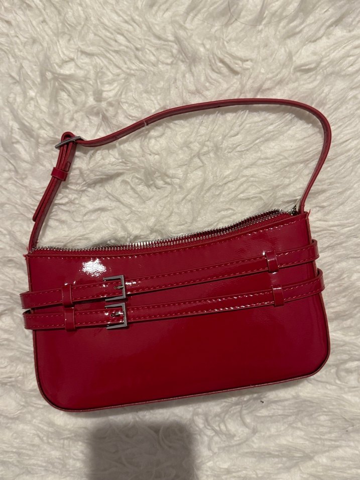 Kırmızı Parlak Deri Kemerli Kadın Çanta
