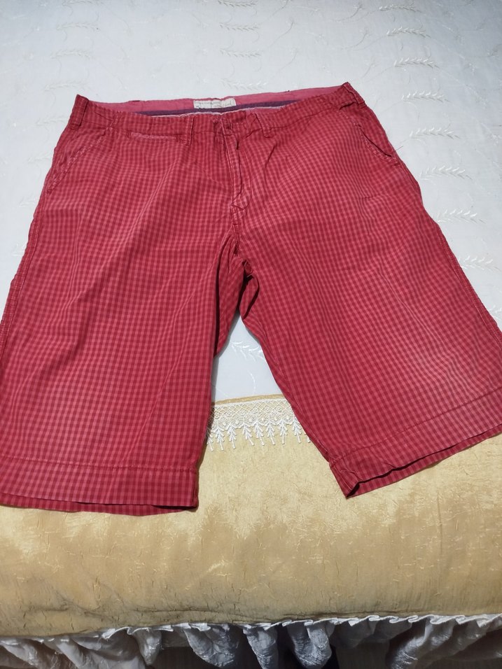 Kırmızı Parlak Düğmeli Erkek Mini Şort