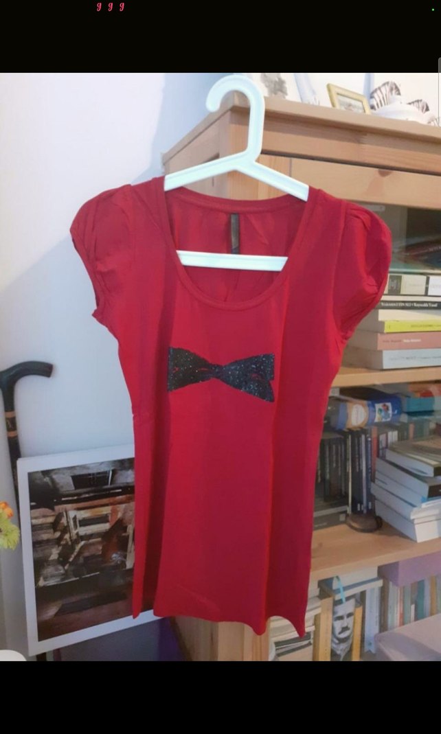Kırmızı Parlak Fiyonk Detaylı Tişört