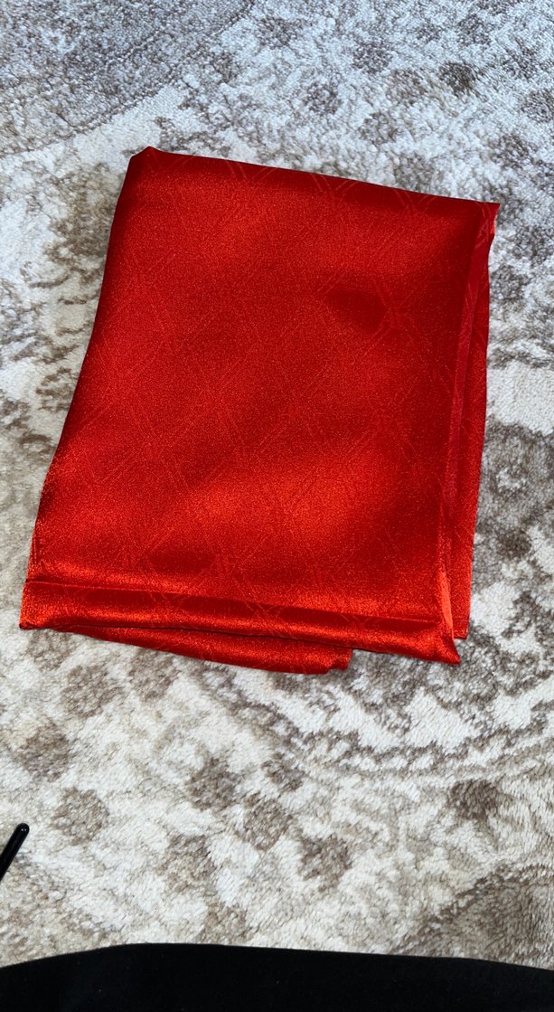 Kadınlar için kırmızı parlak sentetik kumaştan, kürk detaylı, sade ve konforlu şal.