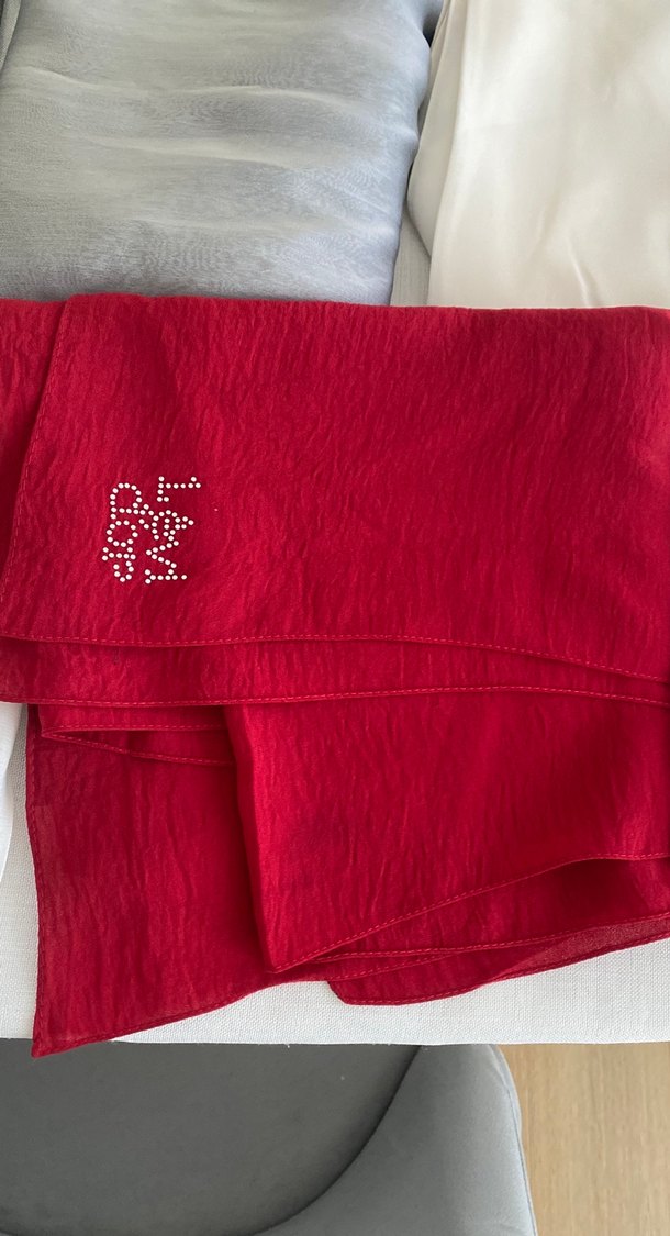 Kadınlar için parlak kırmızı renkte, ipeksi ve dökümlü tasarıma sahip, rahat ve bohem tarzda şal. ✨