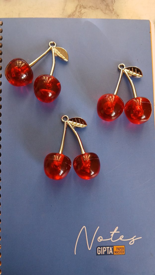 Nakış detaylı, vintage tarzda kırmızı parlak kiraz kadın charm. Romantik akşamlar için uygun.