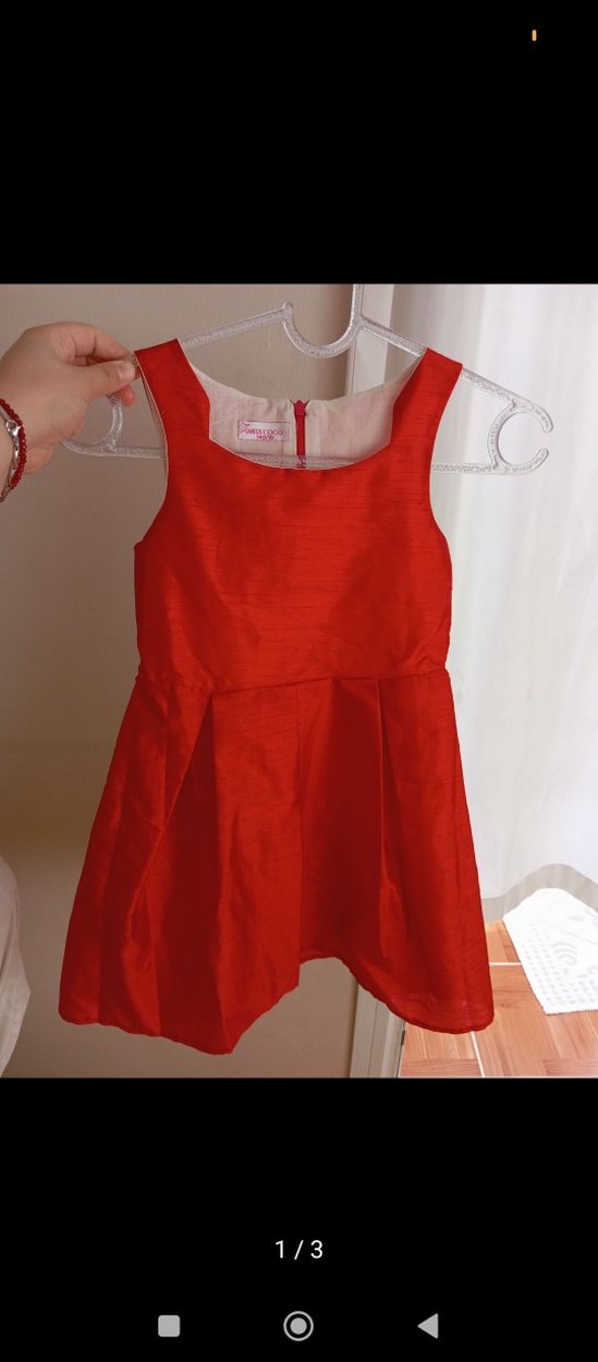 Kırmızı Parlak Kolsuz Kız Çocuk Elbisesi