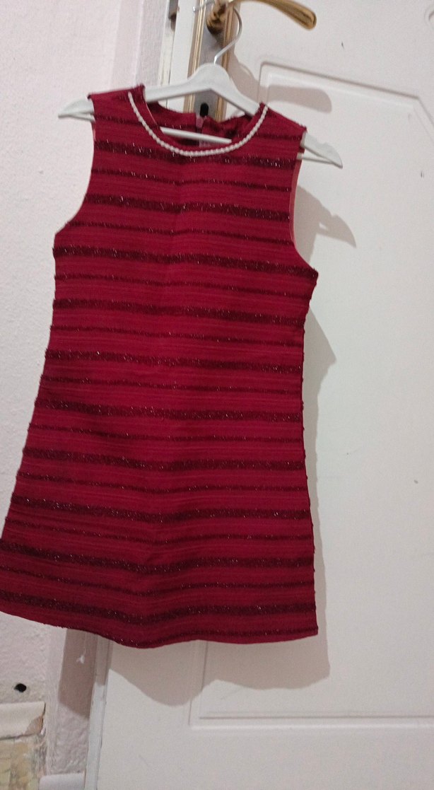 Bu kırmızı parlak kız elbisesi, yüksek yakalı ve pileli detaylara sahiptir. Kolsuz ve sentetik kumaştan yapılmıştır, trend bir görünüm sunar. ✨