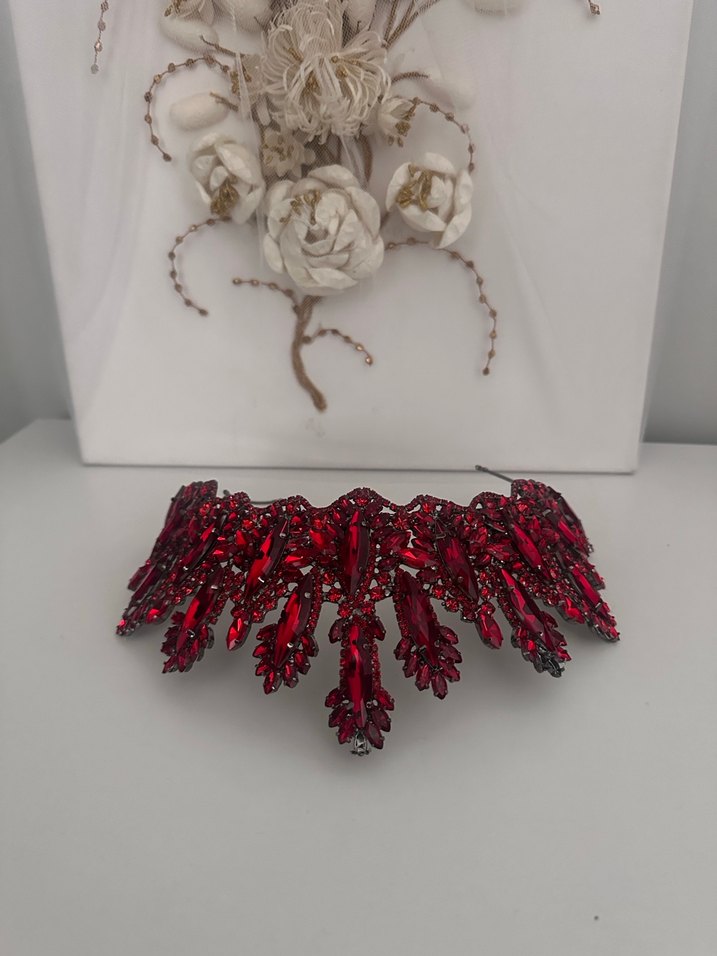 Kırmızı Parlak Taşlı Taç- Kına Tacı