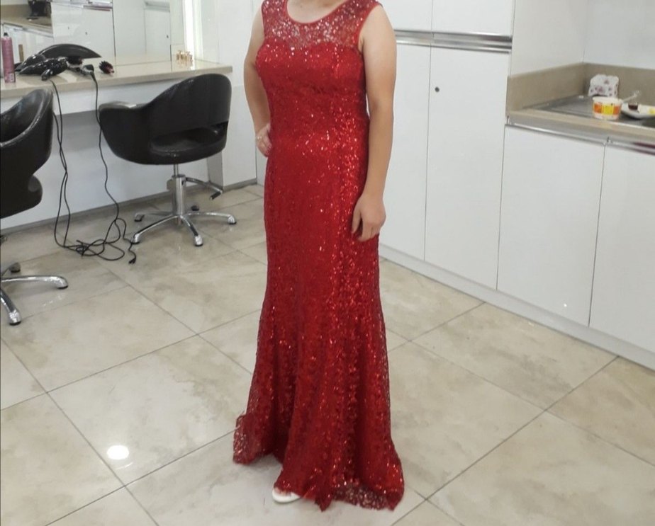 Kırmızı Parlak Uzun Abiye Elbise