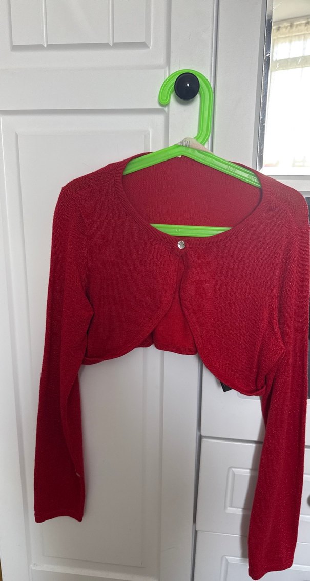 Kırmızı Parlak Uzun Kollu Kız Bolero