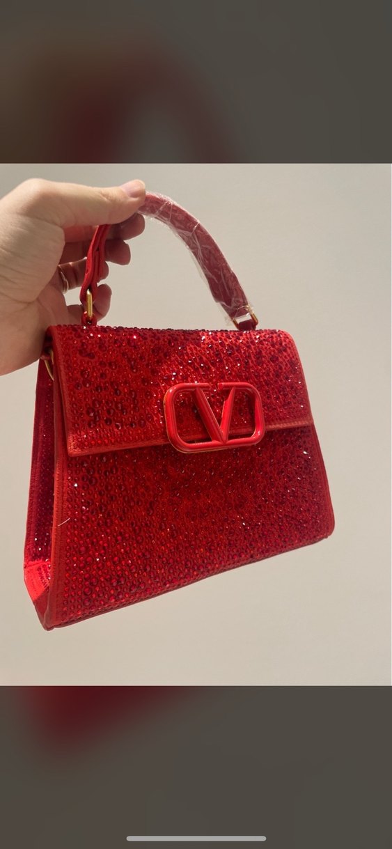 Kırmızı deri kadın çanta, parlak payetler ve baskılı desenle göz alıcı. Cesur tarzınıza romantik akşamlar için şık bir dokunuş. ❤️