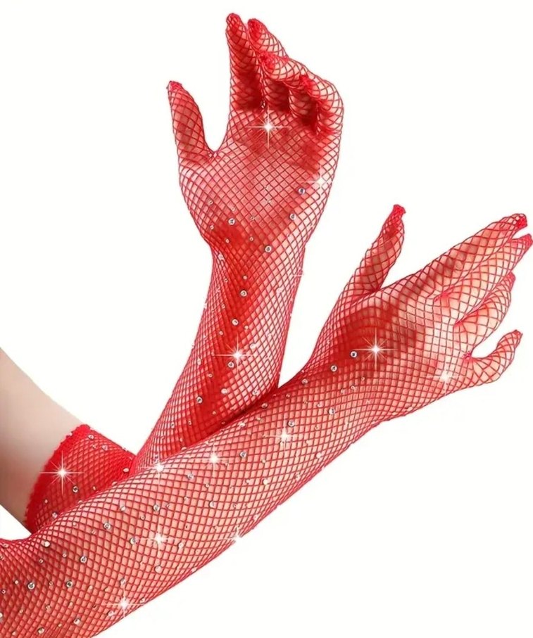 Kırmızı payetli kadın eldivenleri, sentetik kumaştan yapılmış cesur pop kültür tarzında. Parlak ve göz alıcı bir görünüm sağlar. ✨