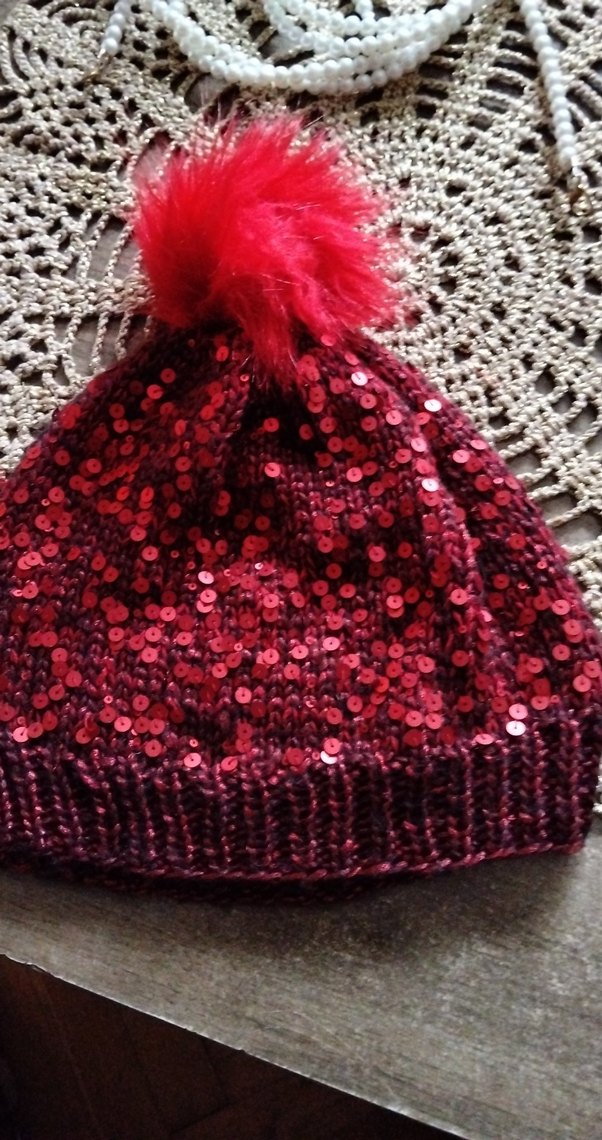 Kirmizi Payetli Kadın Örgü Bere