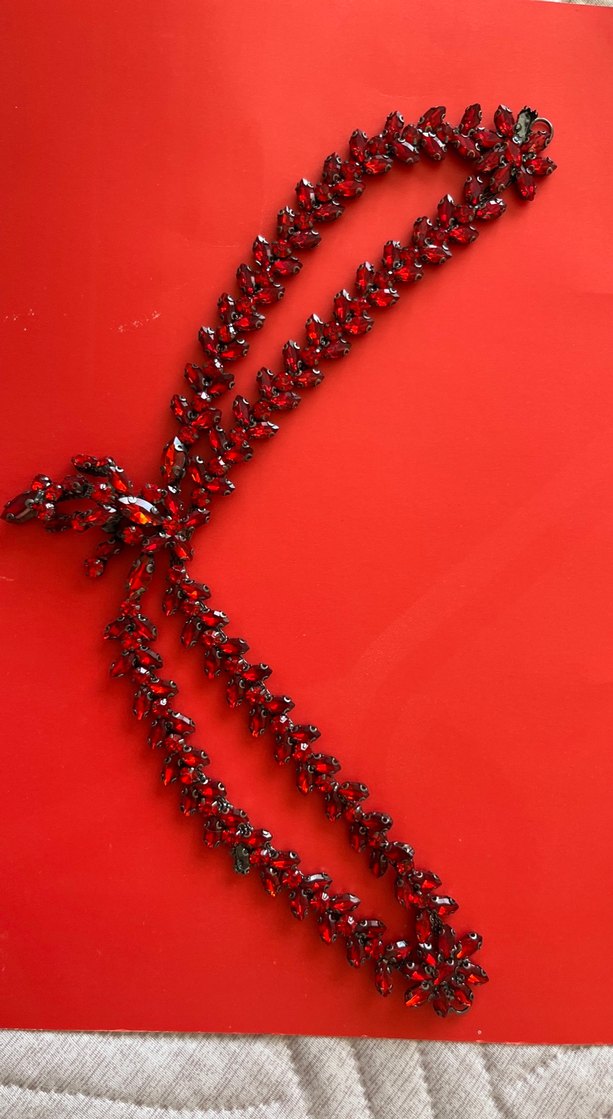 Karanlık kırmızı payetli nakışlarla süslenmiş kadın vücut zinciri, avant-garde ve gotik parti tarzları için uygundur. ✨