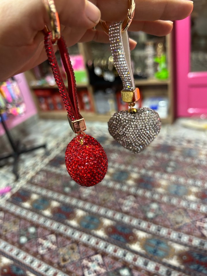 Kırmızı Payetli Kalp Anahtarlık