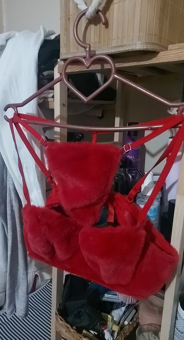 Kırmızı peluş kumaştan, çoklu ince askılı, rahat street wear tarzında bir sütyen. Orta boy ve desensiz tasarıma sahiptir. ❤️