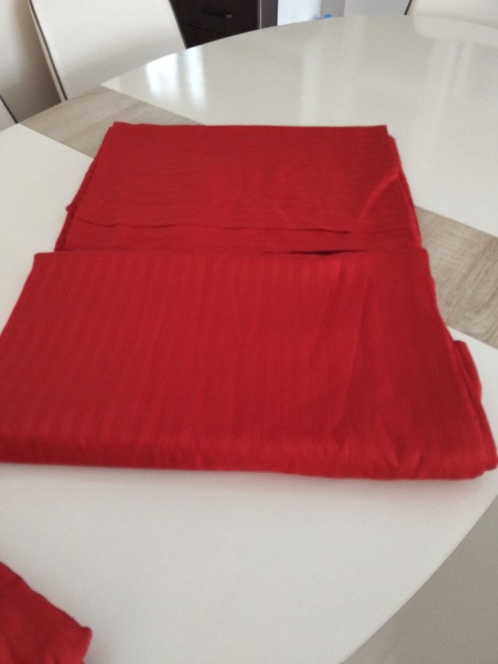 Kırmızı renkte, pilili çift kişilik nevresim takımı lastikli çarşaf, 4 yastık ve nevresim sen oluşuyor sıfır ürün