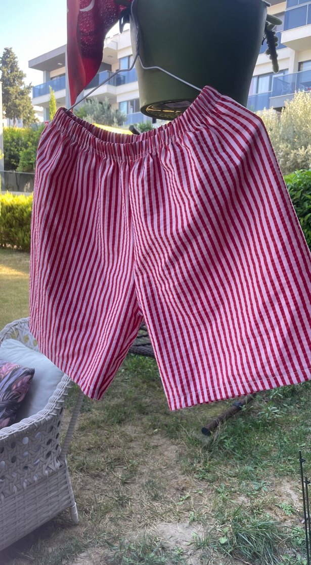 Yumuşak pamuktan üretilmiş, kırmızı, pilili ve bol kesim kadın Bermuda şort. Outdoor ve athleisure tarzı için uygun.