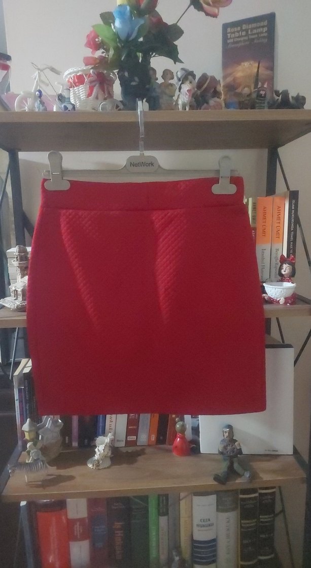 Kırmızı Pilili Kadın Mini Etek