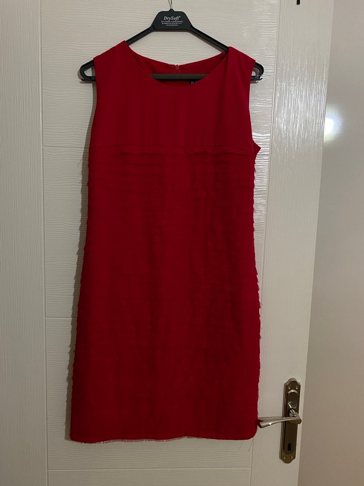 Kırmızı, pilili ve kolsuz midi elbise, dar kesim ve yuvarlak yakaya sahip. Hareketli tatlı ve sade bohem tarzıyla günlük kullanıma uygun. Elbisenin üzerindeki kumaş hareketi çok romantik ve tatlı duruyor ölçüleri de görselledim eğer size ölçüsü tamamsa çok severek giyersiniz. Aşağı doğru kalem gibi dümdüz iner ama vücudu çok Sarmaz tabi eğer kendi ölçününüzse. #abiye #nikah #parti her durum için çok kurtarıcı.